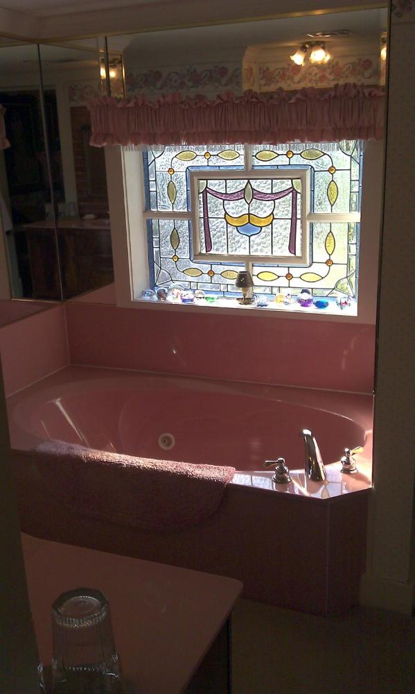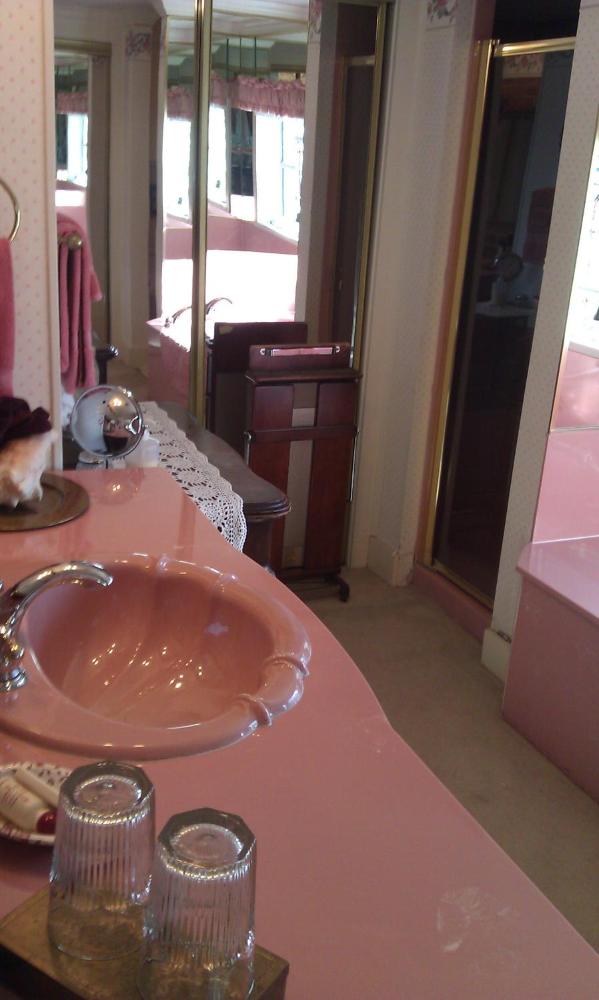 This suite features a 4-post bed with lace canopy. The sitting area includes a sofa, 2 Queen Anne chairs and an antique cabinet with a wet bar. The private bathroom offers an oversize tub with separate walk-in shower and bathrobes. The suite comes with a balcony with swings and rockers that overlook Fairfield Avenue and its side street.